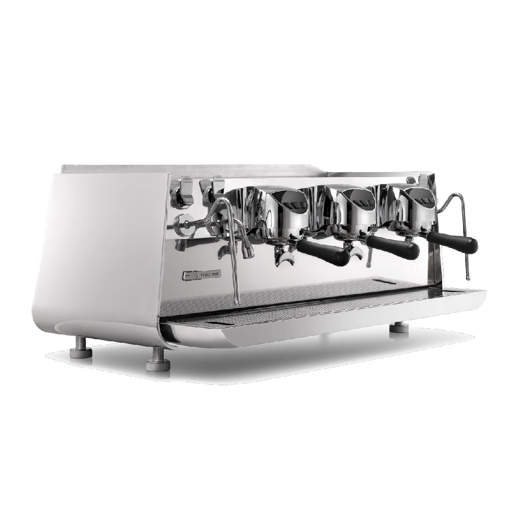 The Eagle One is a commercial espresso machine with individual insulated boilers, PID temperature control, brass brew groups and an internal pump and motor.