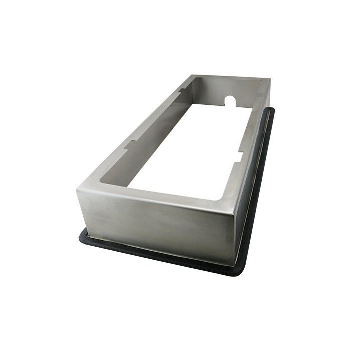 The Rhino stainless steel rinser gives you another install option for your 600mm pitcher rinser. Simply mount the rinser to the raised box and run the drain and supply line though the mouse hole cutout on the bottom. There is a rubber gasket on the bottom to keep it from sliding around on your counter.